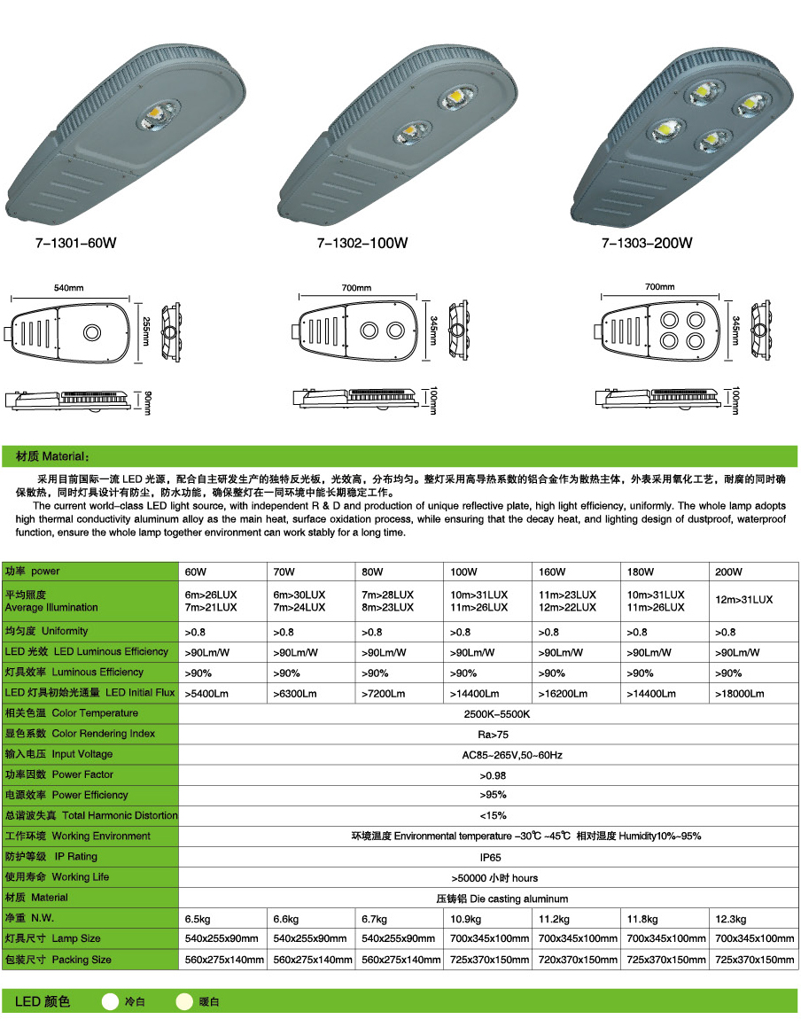 led路燈燈頭7-1301-60W 1302-100W 1303-200W